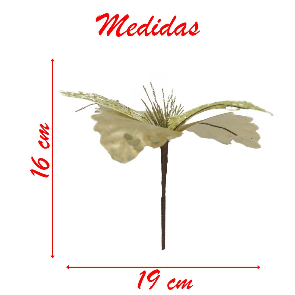 Kit 2 Flor De Natal Dourada Artificial Com Brilho 19cm -