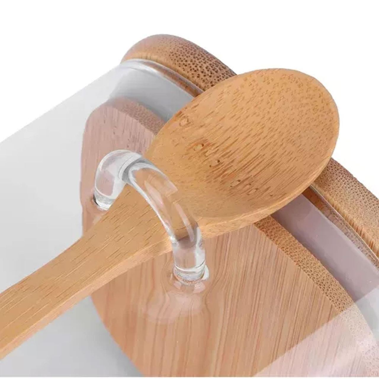 Kit 2 Porta Condimentos Vidro E Bambu Com Colher 1200ml