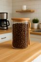 Armazene Seus Grãos, Pó De Café, Chás Ou Mantimentos Com Estilo E Praticidade. Este Pote Hermético De Vidro Possui Tampa De Bambu Com Vedação Em Silicone, Garantindo Frescor E Proteção Contra Umidade. Acompanha Uma Charmosa Colher De Bambu, Perfeita Para Medir A Quantidade Ideal Na Hora De Preparar Sua Bebida.