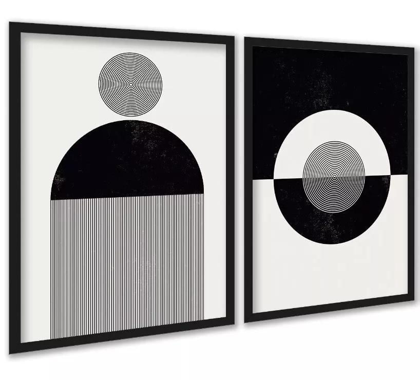 Kit 2 Quadros Abstratos Formas E Linhas Preto E Branco 33x24cm