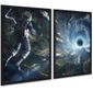 Kit 2 Quadros Astronauta Buraco Negro Espaço 24x18cm