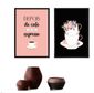 Kit 2 Quadros Cantinho Do Café- Preto E Rosa 24x18cm