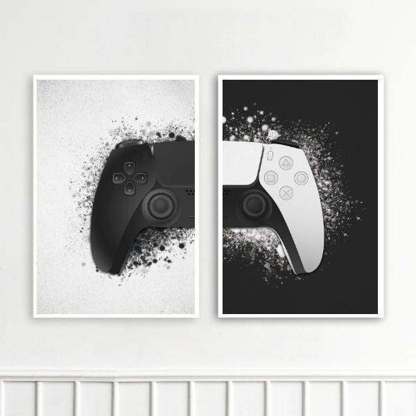 Kit 2 Quadros Controle De Vídeo-game Preto E Branco 45x34cm - Com Vidro