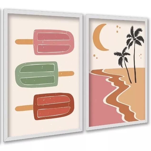 Kit 2 Quadros Decorativos Praia - Picolés 45x34cm