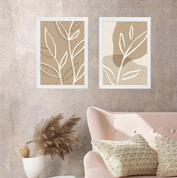 Kit 2 Quadros Minimalista Bege - Simple Leaf 45x34cm
