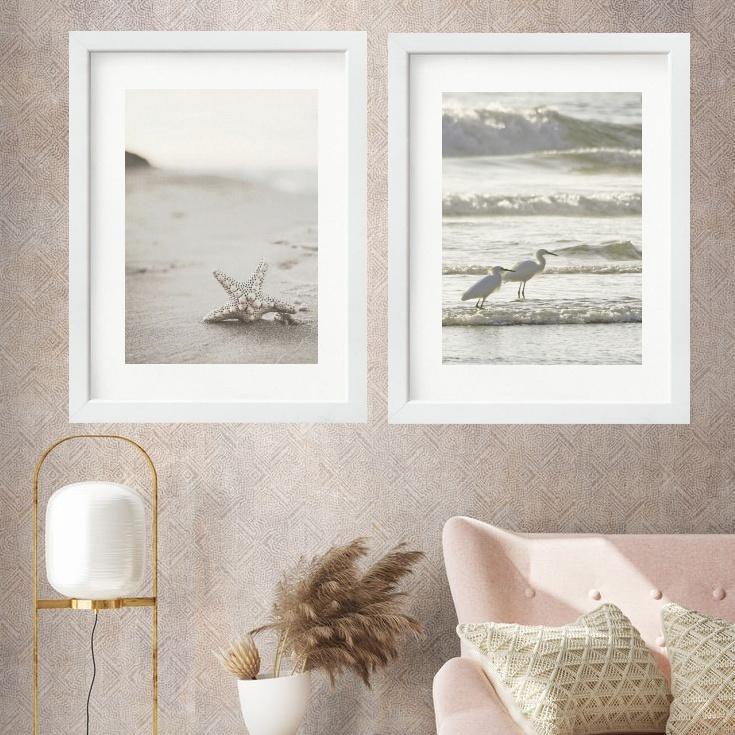 Kit 2 Quadros Praia Branco E Bege - 60x48cm
