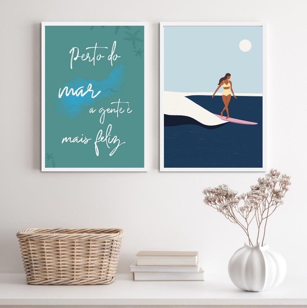adquira Agora Mesmo O Kit 2 Quadros Surf Perto Do Mar A Gente É Mais Feliz 45x34cm E Deixe Sua Decoração Ainda Mais Especial. Surpreenda-se Com A Qualidade E Beleza Desses Quadros E Transforme Seus Ambientes Com Muito Estilo.