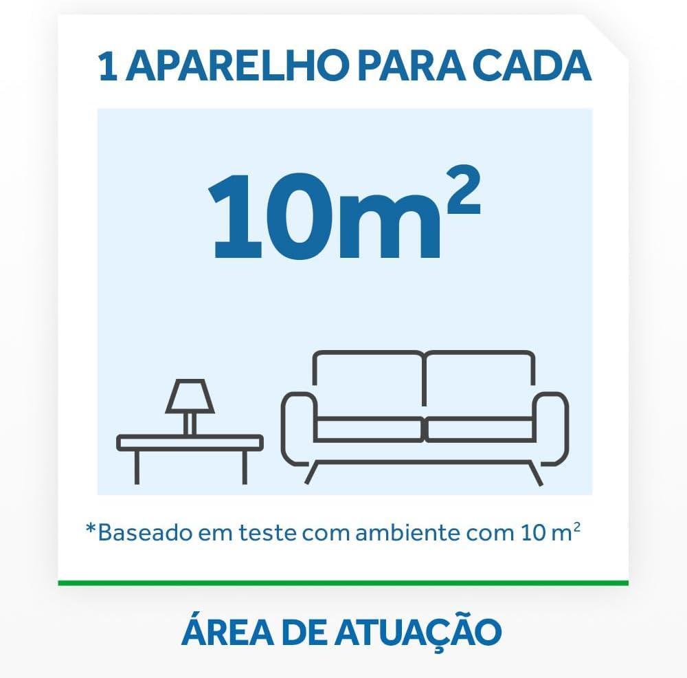 Dica: Para ter uma noite tranquila sem mosquitos, coloque o aparelho na direção da corrente de ar, abrangendo toda a área do ambiente em que você dorme. Não coloque o aparelho atrás de móveis ou acima da altura da cama e o mantenha a pelo menos 2 m de distância da cama. Insira o aparelho na tomada 30 minutos antes da hora de dormir.