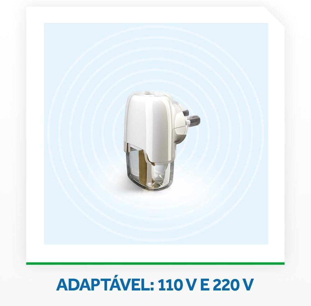 Importante: O aparelho se adapta automaticamente a tomadas de 110 V e 230 V. Durante o uso, o líquido passa a ter uma cor mais forte, sem perder suas características iniciais. O aparelho só pode ser usado com o refil indicado. O uso de outras substâncias pode aumentar os riscos de liberação de substâncias tóxicas ou de incêndio. Pessoas não habilitadas devem ser supervisionadas ao utilizar o produto. Utilize somente o refil do Raid 45 Noites.