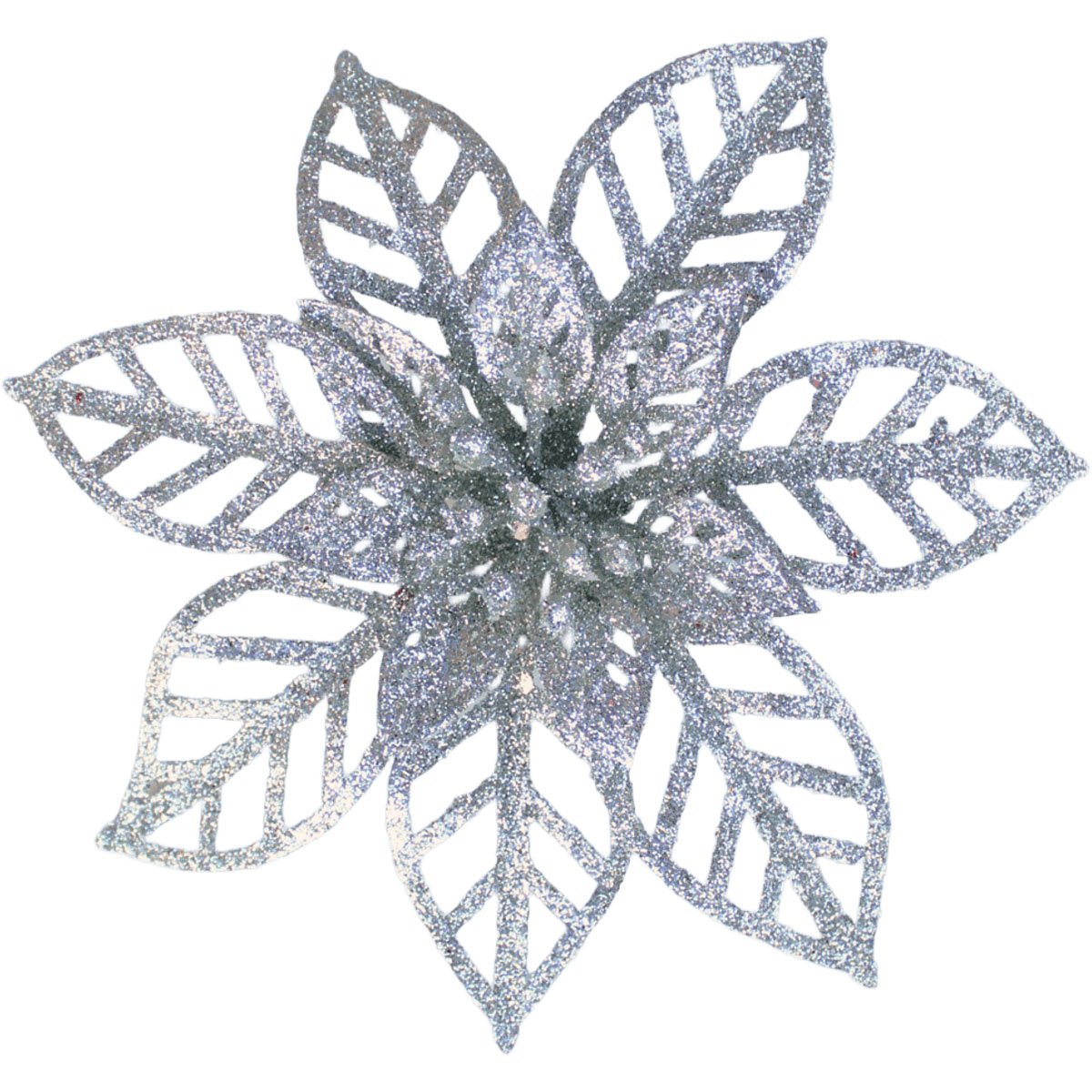 Kit 20 Flores Gliter Prata Decoração Árvore De Natal De 14cm -