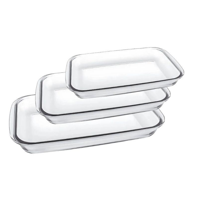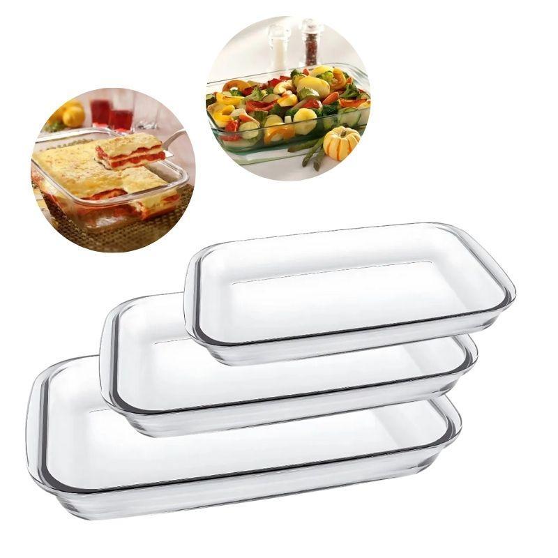 Kit 3 Assadeiras Retangular Refratárias De Vidro Temperado
