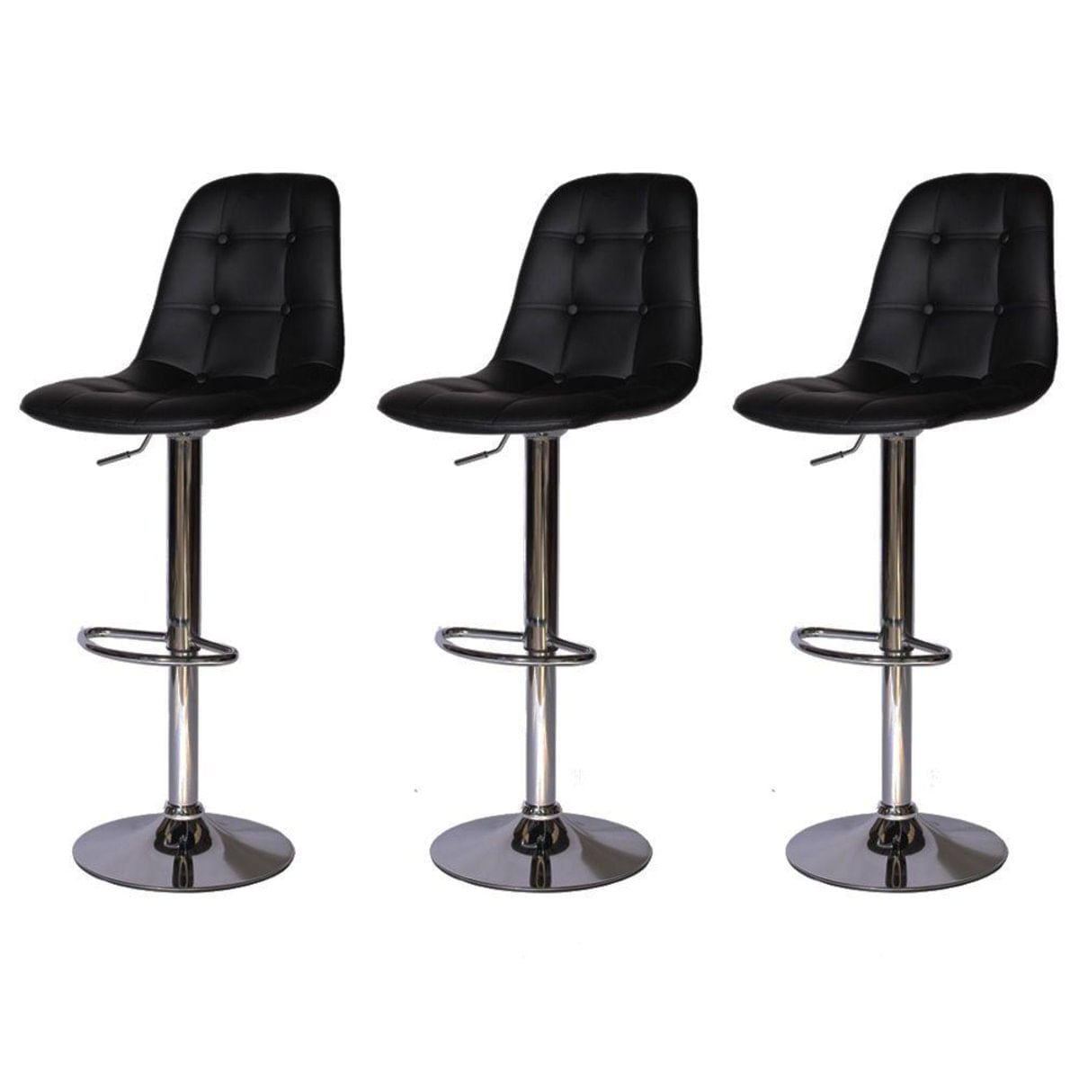 Bem Vindo a Cadeiras Inc Kit 3 Banquetas Para Cozinha Botonê Preta Banqueta Botonê, foi concebida pelo casal Charles e Ray Eames e tem um belo diferencial nesta versão exclusiva que são os botões conferindo estilo vintages. A banqueta que já é um clássico do design, possui boa ergonomia e transmite conforto. Nesta versão é revestida em couro sintético PU, concha interna fabricada em polipropileno e base de aço cromado, que é bem resistente. Características Técnicas Da Banqueta Botonê: Altura Total: 118cm (Alta) / 97cm (Baixa) Altura Do Chão Até o Assento: 82cm (Alta) / 61cm (Baixa) Profundidade: 54,5cm Largura: 45cm Perguntas Frequentes: 1- Tem a pronta entrega? R: Sim, enquanto o anúncio estiver ativo com as cores disponíveis, teremos a pronta entrega. 2- Qual o prazo de despacho? R: Nós da Cadeiras Inc, priorizamos em despachar em até 24 horas úteis após a aprovação do pagamento. 3- Elas vem desmontadas? R: Elas vem pré montadas, basta fixar a base no assento, e ainda acompanha um manual de montagem, é bem simples. Obrigado, e aguardo a sua compra. Cadeiras Inc