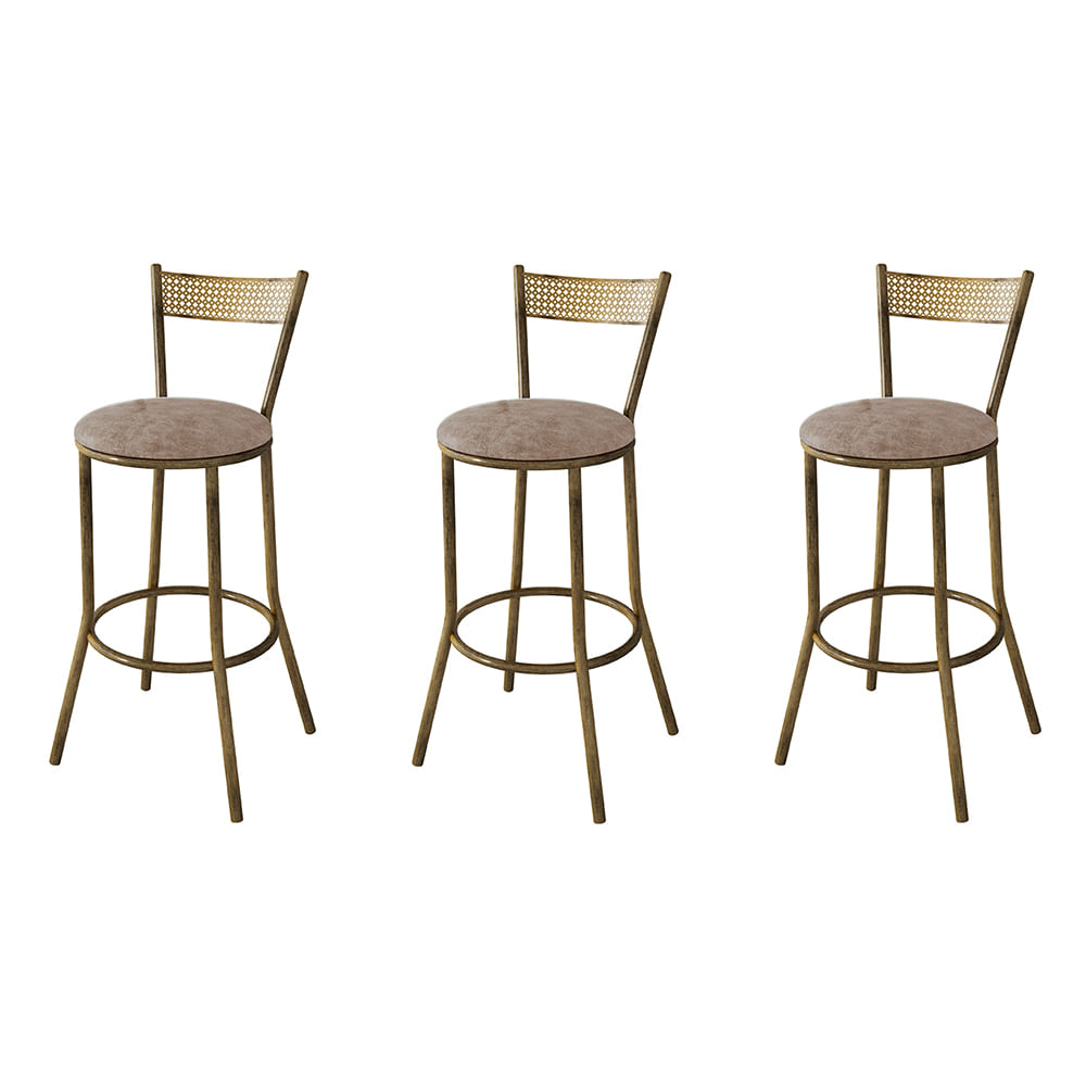 Kit 3 Banquetas Em Aço Sofia Cinza Lunar