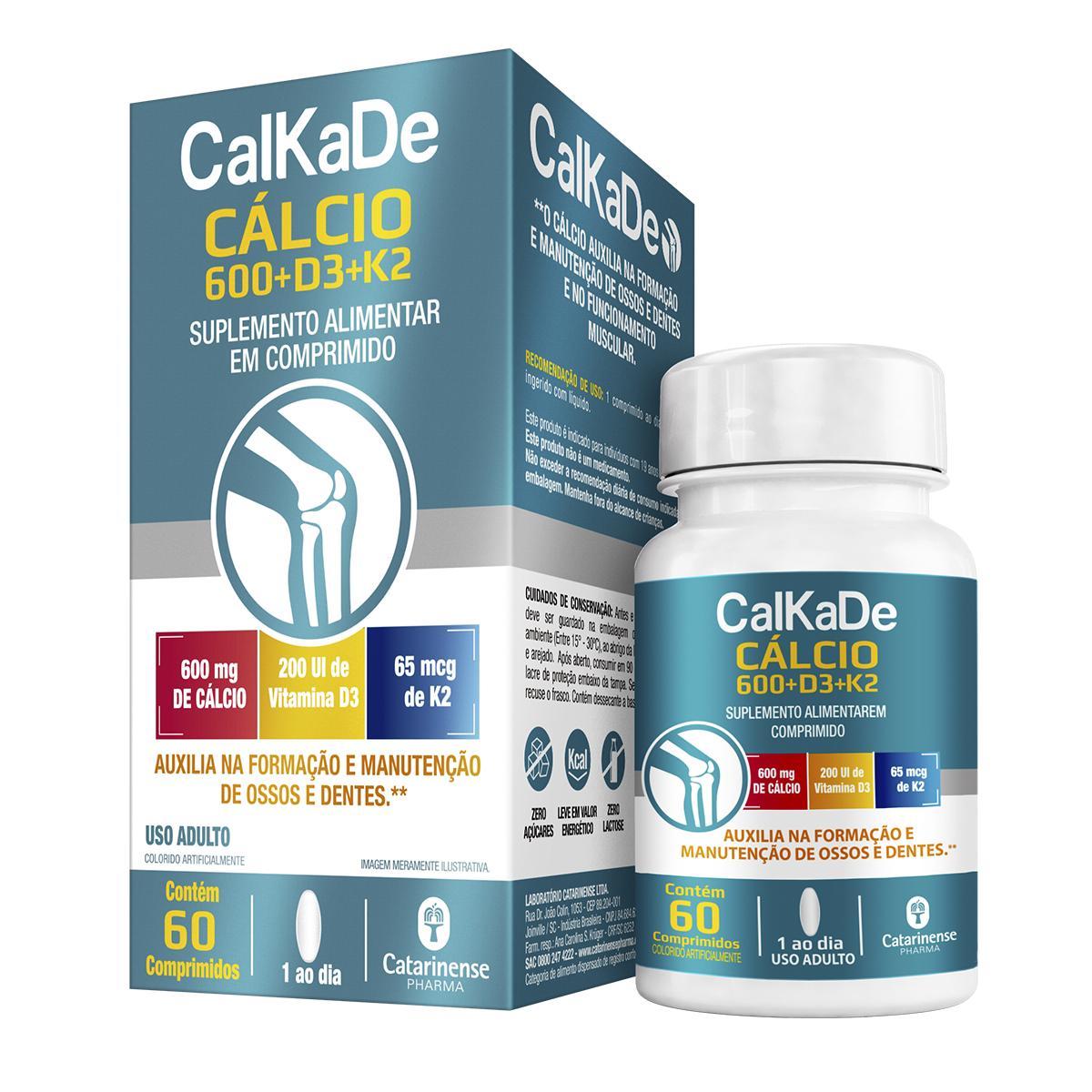 Kit 3 Calkade Cálcio + Vitamina D3 + K2 Catarinense 60 Comprimidos