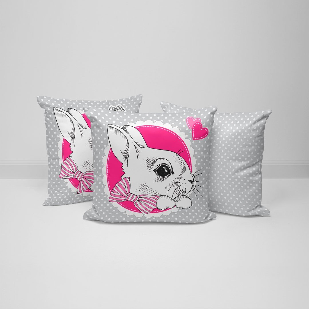 Kit 3 Capas para Almofadas Cute Coelhinho 45X45cm - ...Características Gerais do Produto:.. Tamanho Capas de Almofada: - 3 Capas de Almofadas 45x45cm, - 3 Capas de Almofadas 35x35cm. Tecido: 100% Poliester Oxford. Ziper: Invisível. Estampa: Digital de Alta Qualidade, Estampa frente e verso, Aplicado por Termotransferência. Conteúdo da Embalagem: - Kit de 3 Capas de Almofada. Gênero: unissex. Faixa etária: Acima de 13 anos...Garantia:.. Garantia contra defeito de fabricação