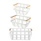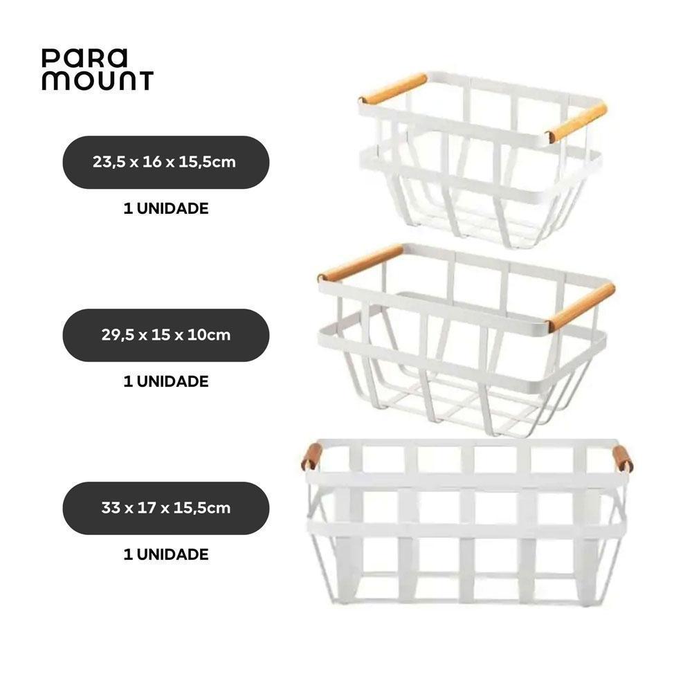 Kit 3 Cesto De Metal Com Alca De Bambu Frutas Multiuso