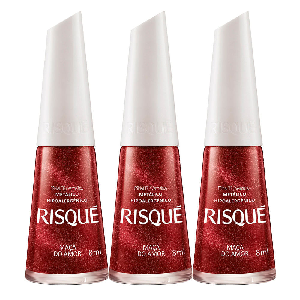 Higiene e PerfumariaUnhasUnhas PostiçasKit 3 Esmalte Risqué Cor Maçã Do Amor Hipoalergênico Metálico Com 8ml