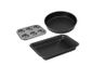 Conjunto Com 3 Formas Retangular, Redonda E Cupcake Pão De Queijo. Ideal Para Assar Bolos, Tortas, Carnes Ou A Receita De Sua Preferência. Produto Com Inmetro, O Que Garante Maior Segurança E Durabilidade Do Produto. Tamanhos Das Assadeiras:assadeira Retangular 42,5x22,5x5cmassadeira Redonda 26,5x5cmassadeira Cupcake Pão De Queijo 26x18,5x3cm Diâmetro Das Cavidades: Aproximadamente 6,5cm