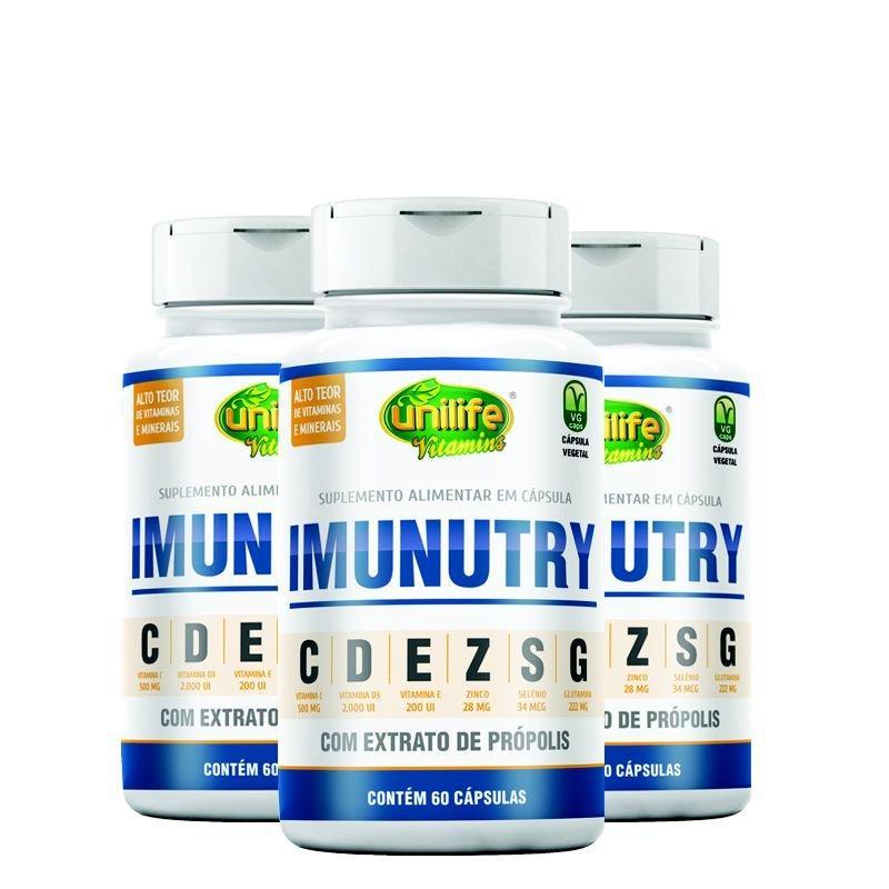 Kit 3 Imunutry Zinco, Selênio, Glutamina, Própolis E Vitaminas C, D E E Unilife 60 Cápsulas