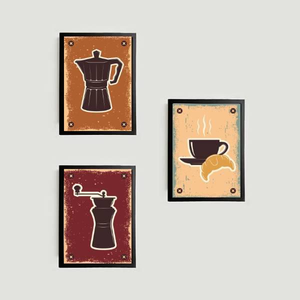 Kit 3 Quadros Café Com Croissant 34x23cm - Moldura Branca