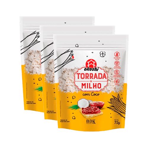 A Torrada De Milho Com Coco Okoshi É Feita Com Apenas Dois Ingredientes, Milho Não-transgênico E Coco Ralado. Perfeita Para Acompanhar Você No Dia-a-dia.