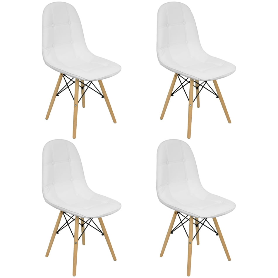 Kit 4 Cadeiras Charles Eames Botonê Eiffel Estofada - Branca