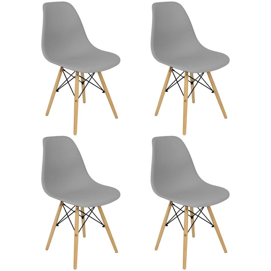 MóveisQuartoCadeira de QuartoKit 4 Cadeiras Charles Eames Eiffel Wood Design - Cinza