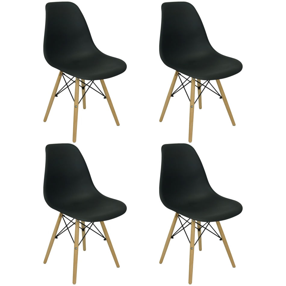 Kit 4 Cadeiras Charles Eames Eiffel Wood Design - Preta