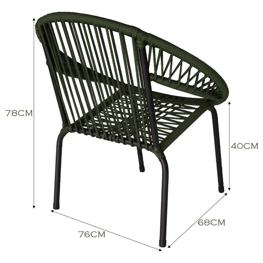 Kit 4 Cadeiras De Área Eclipse Em Aço E Corda Náutica Verdecadeira Eclipse Tramado - Conforto, Durabilidade E Elegancia Para Sua Area Externaa Cadeira Eclipse Tramado Foi Desenvolvida Para Unir O Design Moderno A Funcionalidade Que Seu Espaco De Lazer Merece. Seu Acabamento Em Corda Nautica Tramada A Mao, Aliado A Estrutura Em Aco Carbono Com Pintura Eletrostatica, Proporciona Resistencia Superior E Uma Estetica Artesanal Que Valoriza Qualquer Ambiente. Ideal Para Compor Varandas, Areas Gourmet, Jardins, Sacadas E Espacos Externos, E Um Produto De Alta Durabilidade, Resistente Ao Sol, Umidade E Variacoes Climaticas, Gracas Ao Tratamento Anti-uv Da Corda Nautica. Sua Leveza E Proporcoes Generosas Tornam O Uso Ainda Mais Confortavel, Tanto Em Ambientes Residenciais Quanto Comerciais. Alem Disso, Ela Ja Vai Totalmente Montada, Pronta Para O Uso. Caracteristicas Principais: Altura Total: 78 Cm Largura: 76 Cm Profundidade: 68 Cm Altura Do Assento Ate O Chao: 40 Cm Peso: 4 Kg Capacidade De Carga: 120 Kg Estrutura: Aco Carbono Com Pintura Eletrostatica Acabamento: Corda Nautica Artesanal Com Protecao Uv Indicacao De Uso: Varanda, Jardim, Area Gourmet, Sacada, Espacos Externos Uso Externo: Sim, Com Resistencia Ao Sol E A Umidade Produto Entregue Montado Garantia: 3 Meses Contra Defeitos De Fabricacao Extras: Ponteiras Plasticas Nos Pes + Sobressalentes No Pacote Origem: Produto De Fabricacao Propria, Com Qualidade Industrial Pedidos Em Grande Quantidade: Atendemos Encomendas Sob Demanda Instrucoes De Limpeza: Para Preservar Sua Cadeira Eclipse Tramado, Utilize Apenas Um Pano Macio Umedecido Com Agua E Sabao Neutro. Evite Produtos Quimicos, Tanto Na Corda Quanto Na Estrutura Metalica, Para Manter A Integridade Do Material E A Aparencia Original Por Muito Mais Tempo.