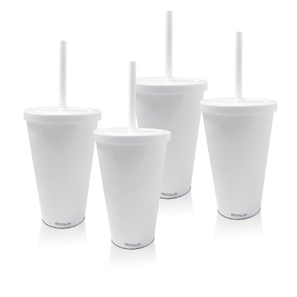 Kit 4 Copos Com Tampa E Canudo Branco Acrílico Ps