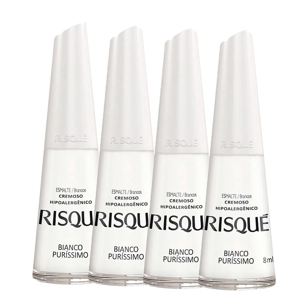 Kit 4 Esmalte Risqué Cor Bianco Puríssimo Hipoalergênico 8ml