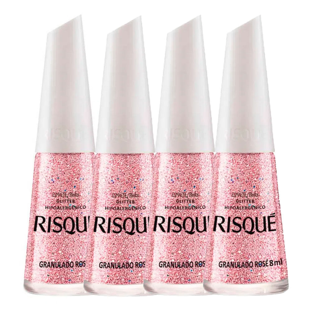 Kit 4 Esmalte Risqué Cor Granulado Rosé Glitter 8ml