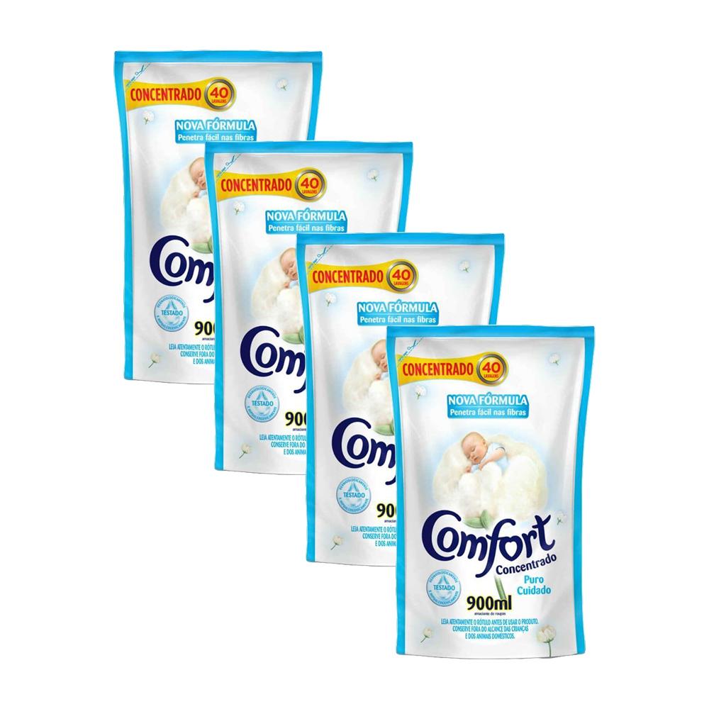 Kit 4 Refis Amaciante de Roupa Comfort Concentrado Puro Cuidado Intense 900ml