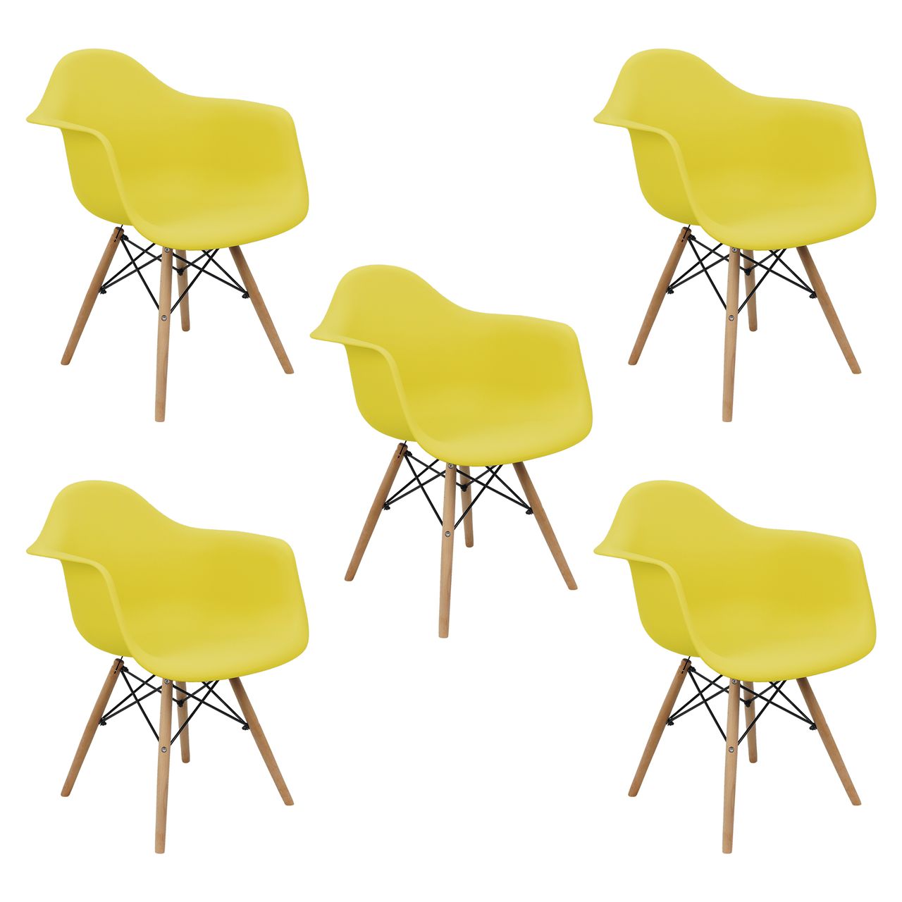 Kit 5 Cadeiras Charles Eames Eiffel Design Wood Com Braços
