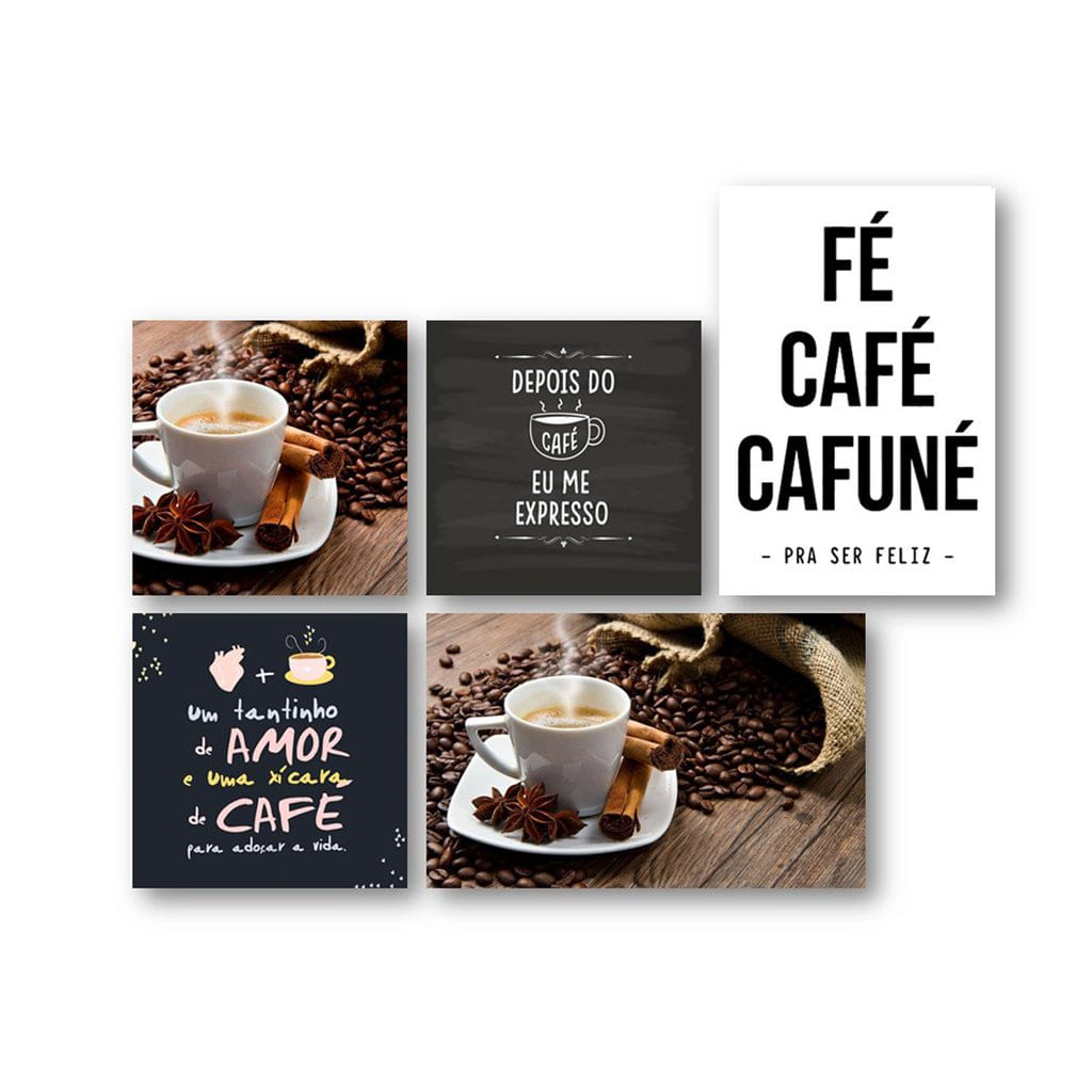 Características do produto: Tamanho: 20x30cm e 20x20cm, Material: MDF 3mm de espessura, Impressão: Papel adesivo brilho, com uso de pigmento em pó de carbono, Fixação: Fita dupla face, Moldura: Não acompanha, Embalagem: Kit com 2 Placas decorativas tamanho 20x30cm e 3 no tamanho 20x20cm, Confecção: 4 dias úteis, após a compra. Descrição do produto: Se você também AMA tomar um café, e tem um cantinho especial dentro de casa para isto, nossas placas decorativas são essenciais para você! As placas decorativas em MDF estão super em alta nas decorações de todas as casas, pois elas são super versáteis e mantêm sempre a personalidade do morador no ambiente. Elas podem ser coladas na parede com fita dupla face que já vem no verso da placa, ou também pode ser apoiada em um aparador, estante, mesa de centro, rack ou até mesmo em uma mesa de canto de cabeceira. Nossas placas são feitas com um papel adesivo brilhante, impressas em impressora a laser, com o uso de pigmento em pó de carbono, para manter as cores mais vivas e mais duradouras e após isto, coladas no MDF cru de 3mm. Não deixe de decorar o seu ambiente com nossas placas para que fique super moderno e elegante.
