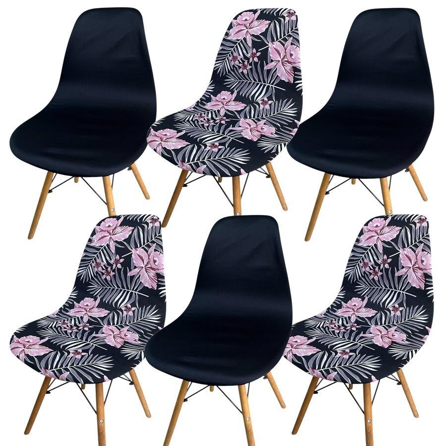 Kit 6 Capa De Cadeira Charles Eames Eiffel Pé Palito Malha Mista