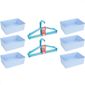 Kit 6 Cestos Multiuso E 10 Cabides Infantil Reforçado Azul