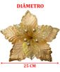 Kit 6 Flores Artificial Glitter Enfeite Dourado Natal 25cm -