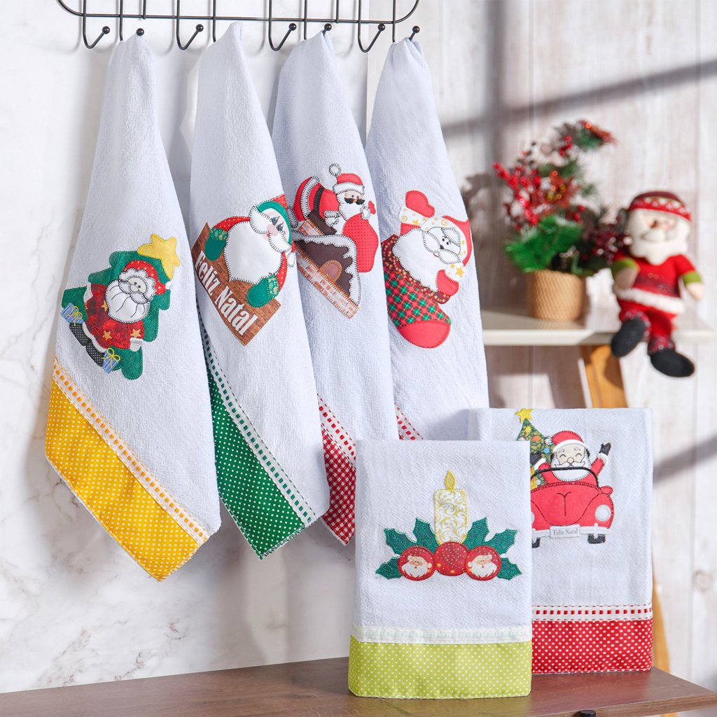 Kit 6 Pano De Copa Patchwork Natalino 46x67cm Sortidos - Aplique Bordado, Passa Fita, Barra De Tecido Aplicado, Bainha