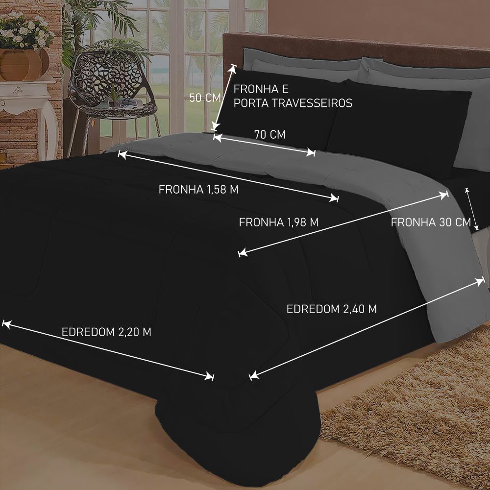 Kit 6 Pcs Aconchego Casal Queen Preta E Cinza