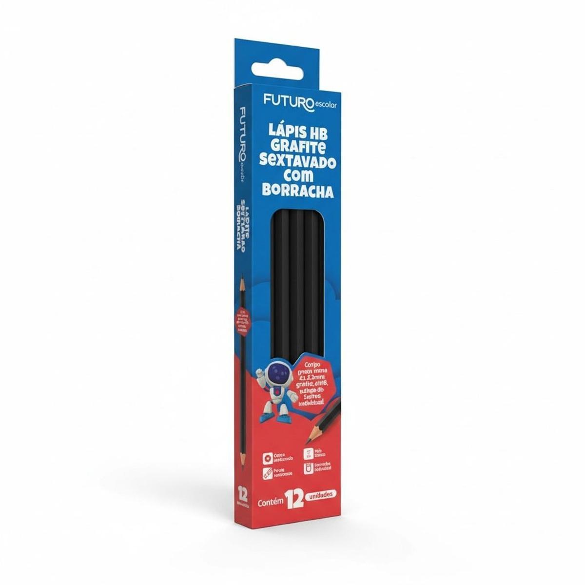 Lápis Preto HB Sextavado Com Borracha - 1 Caixa Com 12 Unidades