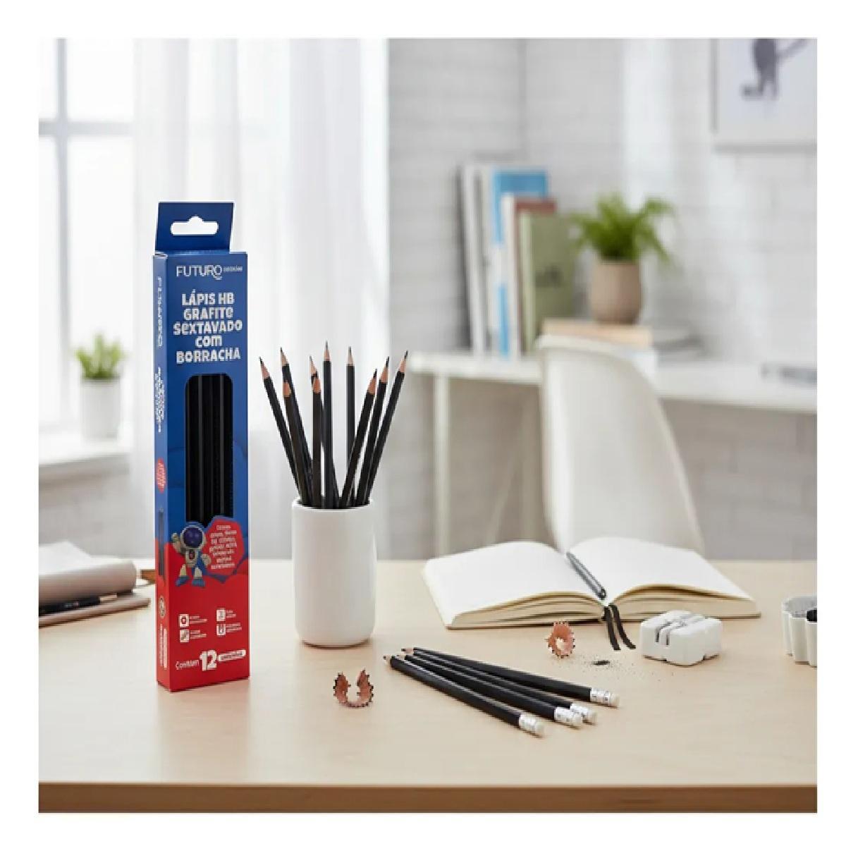 Imagine traços suaves e precisos em cada esboço, sem interrupções indesejadas. O Lápis Grafite HB com Borracha Corpo Preto Sextavado entrega exatamente isso: