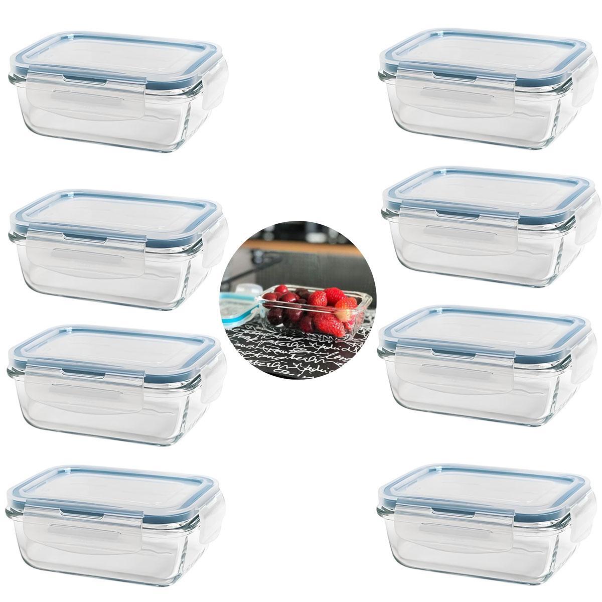 Kit 8 Potes De Vidro Hermetico Retangular 370 Ml - Ad789654512137