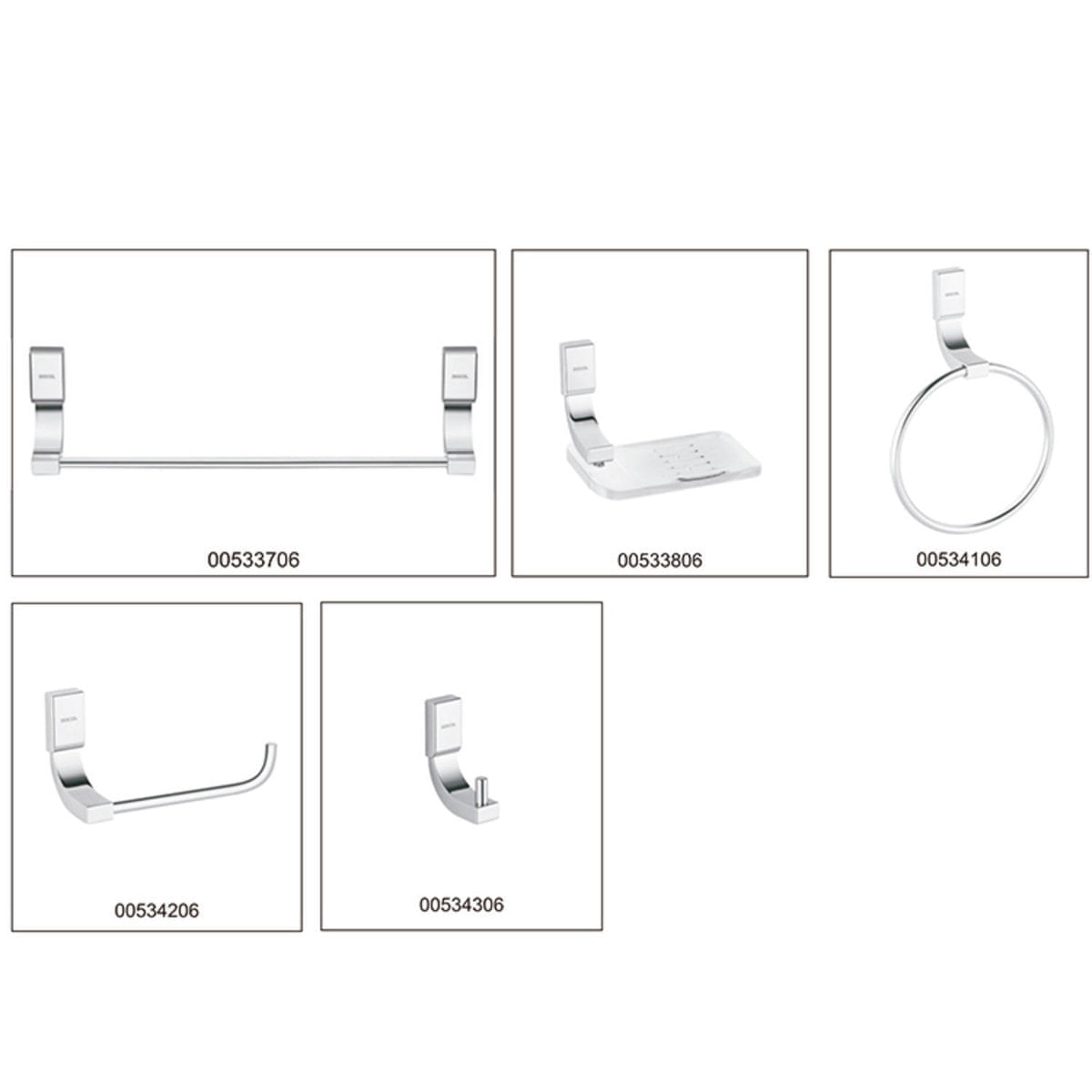 | Itens Inclusos | 1 Toalheiro Barra; 1 Toalheiro Barra Rosto; 1 Saboneteira; 1 Papeleira; 1 Cabide; 14 Parafusos; 14 Buchas; Manual de Instalação; |