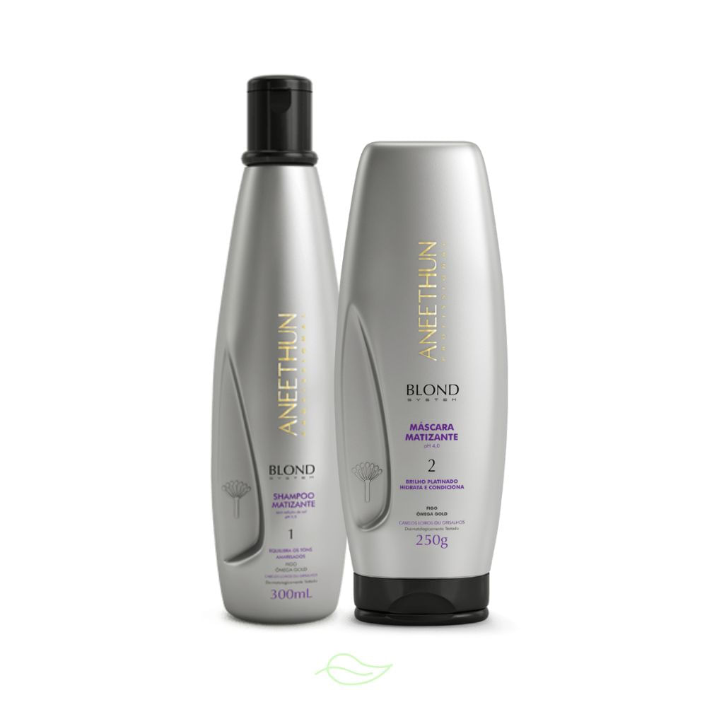 Conteúdo Da Embalagem 1- Shampoo Matizante Blond System Aneethun 300ml 1- Máscara Matizante Blond System Aneethun 250g Linha De Tratamento Com Tecnologia Ótica Reflective A, C E Acid Violet, Que Neutraliza O Amarelo Indesejado, Uniformiza A Cor Dos Fios Loiros E Grisalhos, Iluminando O Tom Claro Dos Cabelos. Diferenciais - Linha Blond Possui Serviço De Lavatório Com Matização Instantânea E Não Resseca Os Fios - Linha Home Care Matizante E Uma Linha Home Care De Uso Diário - Ativo Acid Violet, Que Age Neutralizando Os Tons Amarelos / Alaranjados Dos Fios, Promovendo Um Tom Platinado Frio - Tecnologia Ótica Reflective A, Que Potencializa A Reflexão Difusa Da Luz Branca, Neutralizando O Amarelamento E Proporcionando Brilho Extremo Aos Fios - Tecnologia Ótica Reflective C, Que Neutraliza Os Reflexos Amarelos/alaranjados, Realçando O Tom Dos Cabelos Ativos Figo: Extrato Natural Que Possui Os Principais Nutrientes Para A Saúde Dos Fios: Proteínas, Sais Minerais, Açúcares, Vitaminas E Carotenoides. Ômega Gold: Antioxidante De Alta Performance. Possui Altos Níveis De Tocoferóis E Vitamina E. Acid Violet: Pigmento Que Age Neutralizando Os Tons Dourados E Alaranjados Dos Fios, Promovendo Um Tom Platinado Frio. Reflective A: Ativo Com Tecnologia Ótica Que Potencializa A Reflexão Difusa Da Luz Branca, Neutraliza O Amarelamento E Proporciona Brilho Extremo Aos Fios. Reflective C: Ativo De Última Tecnologia Com Efeito Imediato De Neutralização Dos Reflexos Alaranjados. Proporciona Vivacidade E Brilho Extremo. Aminoácidos Vegetais: Restauram As Estruturas Danificadas Da Medula E Córtex, Preenchendo As Regiões Danificadas Das Cutículas. Tipos De Cabelo Loiros E Grisalhos