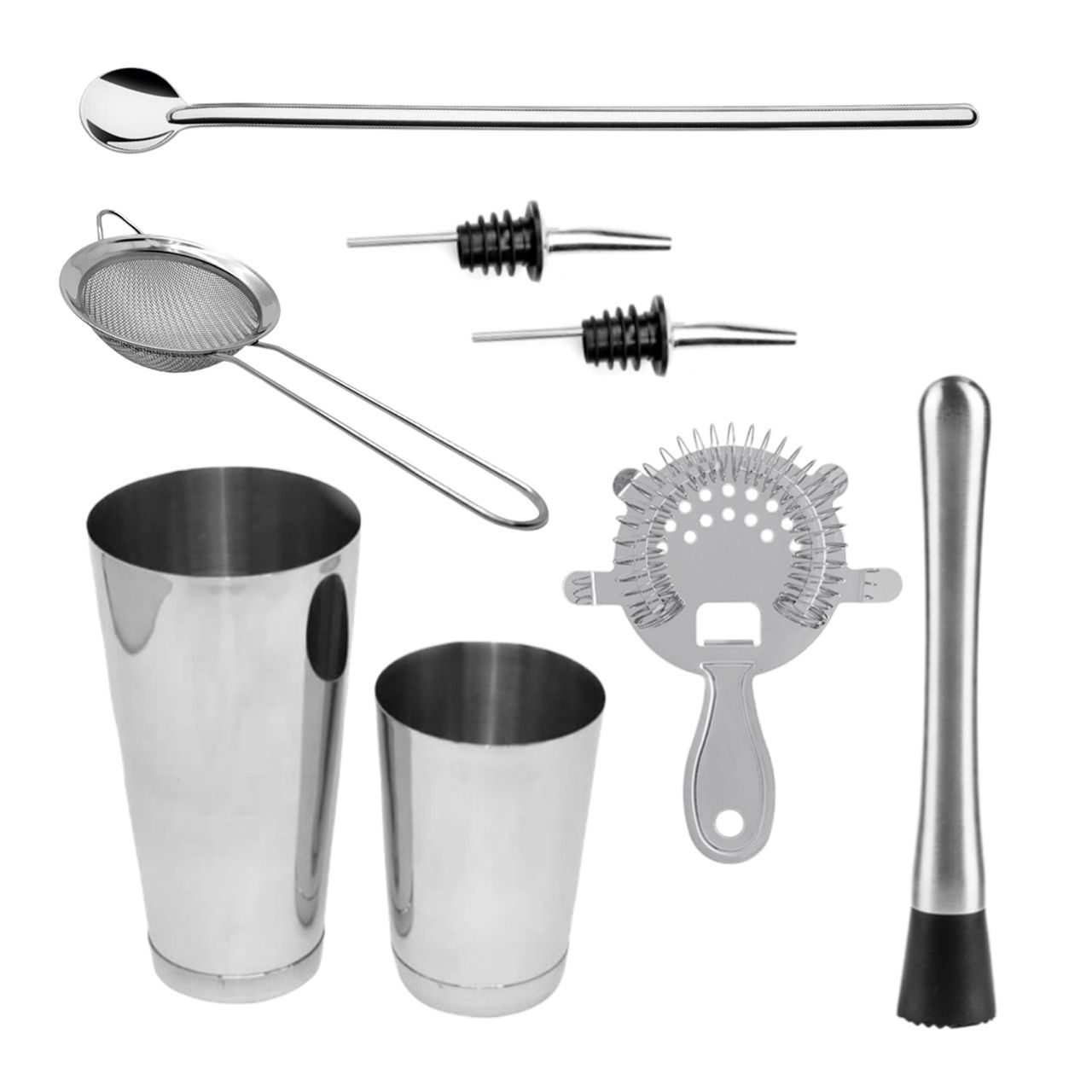 Descrição Do Produto: O Kit Bar Iniciante 6 Bartender 8 Peças É Ideal Para Quem Deseja Começar A Preparar Drinks De Maneira Profissional Ou Aprimorar Suas Habilidades Como Bartender. Composto Por Acessórios Essenciais De Alta Qualidade, Este Kit Traz Praticidade E Estilo Para A Sua Experiência Na Coquetelaria. Feito Em Aço Inoxidável, Oferece Durabilidade E Resistência, Garantindo Um Manuseio Seguro E Eficiente. Características Principais: Conjunto Completo Com 8 Peças Essenciais Para Coquetelaria Feito Em Aço Inox Para Maior Durabilidade E Resistência Ideal Para Iniciantes E Bartenders Profissionais Características Do Produto: Material: coqueteleira: Aço Inoxidável mini Tin: Aço Inoxidável bico Dosador: Aço Inoxidável/borracha peneira: Aço Inoxidável colher Bailarina: Aço Inoxidável Escovado Não Polido coador 4 Apoios: Aço Inoxidável macerador: Aço Inoxidável/plástico Medida: coqueteleira: Diâmetro Da Boca 9,4cm X Altura 17,5cm mini Tin: Diâmetro Da Boca 8,5cm X Altura 14cm bico Dosador: Comprimento 3cm X Largura 3cm X Altura 10,2cm peneira: Comprimento 23cm X Largura 7,8cm X Altura 4,5cm colher Bailarina: Comprimento 30cm X Largura 3,3cm X Altura 1cm coador 4 Apoios: Comprimento 15,1cm X Largura 11,5cm X Altura 1,9cm macerador: Diâmetro Da Ponta 3,3cm X Comprimento 20cm Cor: coqueteleira: Cinza mini Tin: Cinza bico Dosador: Prata/preto peneira: Prata colher Bailarina: Prata coador 4 Apoios: Prata macerador: Prata E Preto Capacidade: coqueteleira: 840ml - 28oz mini Tin: 540ml - 18oz bico Dosador: Fluxo Constante Item Da Embalagem: 1 Unidade - coqueteleira Bartender Boston Em Inox Com Peso 28oz / 840ml Cor:cinza 1 Unidade - mini Tin De Inox Com Peso 18oz / 540ml Cor:cinza 2 Unidades - bico Dosador De Inox Biqueira 1 Unidade - Peneira Em Inox Para Dupla Filtragem Modelo Pro Cor:cinza 1 Unidade - colher Bailarina Em Inox Lisa Cor:prata 1 Unidade - coador De Coquetéis Strainer Em Inox 4 Apoios 1 Unidade - macerador Côncavo Em Inox Com Ponta Estriada 20cm Cor:prata Faq: Este Kit É Indicado Para Iniciantes? Sim! Ele Foi Pensado Para Atender Tanto Iniciantes Quanto Bartenders Profissionais. Os Acessórios São Resistentes? Sim! São Feitos De Aço Inoxidável, Garantindo Alta Durabilidade E Resistência. É Fácil De Limpar? Sim! Todos Os Itens Podem Ser Lavados Facilmente Com Água E Sabão Neutro. Descrição Complementar: Conjunto Completo Com 8 Peças Essenciais Para Coquetelaria Feito Em Aço Inox Para Maior Durabilidade E Resistência Ideal Para Iniciantes E Bartenders Profissionais