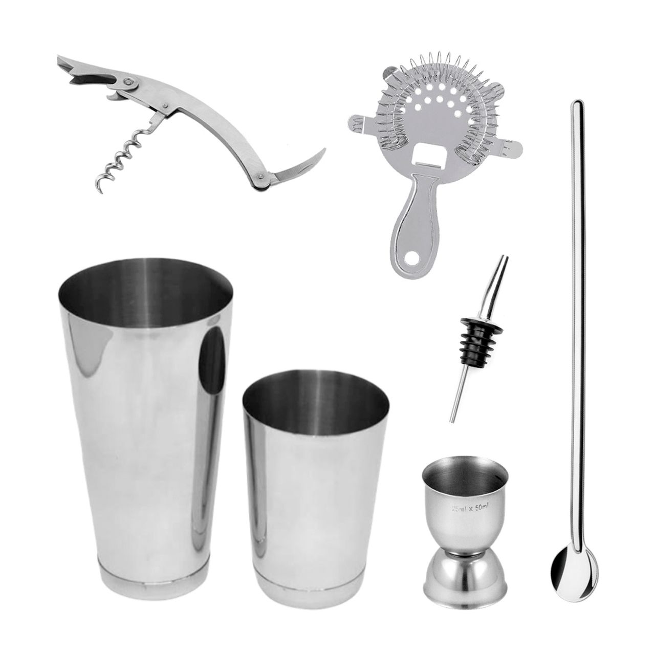 Descrição Do Produto: O Kit Bar Iniciante 9 Bartender 7 Peças É Ideal Para Quem Está Começando Na Coquetelaria E Deseja Montar Seu Próprio Bar Com Estilo E Praticidade. Composto Por Peças Essenciais E Duráveis Em Aço Inox, É Perfeito Para Preparar Desde Drinks Clássicos Até Criações Autorais. Indicado Para Uso Doméstico E Profissional. Características Principais: Conjunto Completo Com Os Itens Básicos Para Bartenders Material Resistente E Fácil De Limpar Design Funcional E Elegante Para Preparo De Drinks Características Do Produto: Material: coqueteleira: Aço Inoxidável mini Tin: Aço Inoxidável dosador Duplo: Aço Inoxidável colher Bailarina: Aço Inoxidável Polido Não Escovado bico Dosador: Aço Inoxidável/borracha saca Rolha: Aço Inoxidável coador 4 Apoios: Aço Inoxidável Medida: coqueteleira: Diâmetro Da Boca 9,4cm X Altura 17,5cm mini Tin: Diâmetro Da Boca 8,5cm X Altura 14cm dosador Duplo: Comprimento 4,6cm X Largura 4,6cm X Altura 7,1cm colher Bailarina: Comprimento 30cm X Largura 3,3cm X Altura 1cm bico Dosador: Comprimento 3cm X Largura 3cm X Altura 10,2cm saca Rolha: comprimento 16cm X Largura 2,5cm X Altura 1cm coador 4 Apoios: Comprimento 15,1cm X Largura 11,5cm X Altura 1,9cm Cor: coqueteleira: Cinza mini Tin: Cinza dosador Duplo: Prata colher Bailarina: Para bico Dosador: Prata/preto saca Rolha: Prata coador 4 Apoios: Prata Capacidade: coqueteleira: 28oz - 840ml mini Tin: 18oz - 540ml dosador Duplo: 25 X 50ml Item Da Embalagem: 1 Unidade - coqueteleira Bartender Boston Em Inox Com Peso 28oz / 840ml Cor:cinza 1 Unidade - mini Tin De Inox Com Peso 18oz / 540ml Cor:cinza 1 Unidade - dosador De Inox Duplo 25 X 50ml Cor:prata 1 Unidade - colher Bailarina Em Inox Lisa Cor:prata 1 Unidade - bico Dosador De Inox Biqueira 1 Unidade - saca Rolha Canivete Inox 1 Unidade - coador De Coquetéis Strainer Em Inox 4 Apoios Faq: Esse Kit Serve Para Iniciantes? Sim, Ele Foi Pensado Para Quem Está Começando Na Coquetelaria. É Feito De Aço Inoxidável? Sim, Todos Os Itens (exceto O Bico Dosador) São Em Inox. Quantas Peças Acompanham O Kit? São 7 Peças Essenciais Para A Montagem De Drinks.