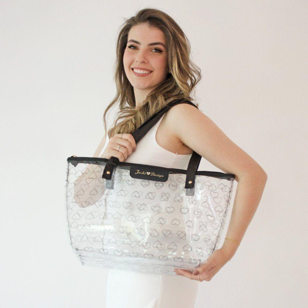 Coleção Lovecom Design Moderno E Toque Feminino, A Bolsa Shopper Transparente Da Coleção Love É Feita Em Pvc Resistente, Impermeável E Fácil De Limpar. Destaque Para Os Detalhes Em Formato De Coração E O Pin Dourado Com A Assinatura Jacki Design. Possui Amplo Espaço Interno E Fechamento Em Zíper, Ideal Para O Dia A Dia, Praia Ou Piscina.