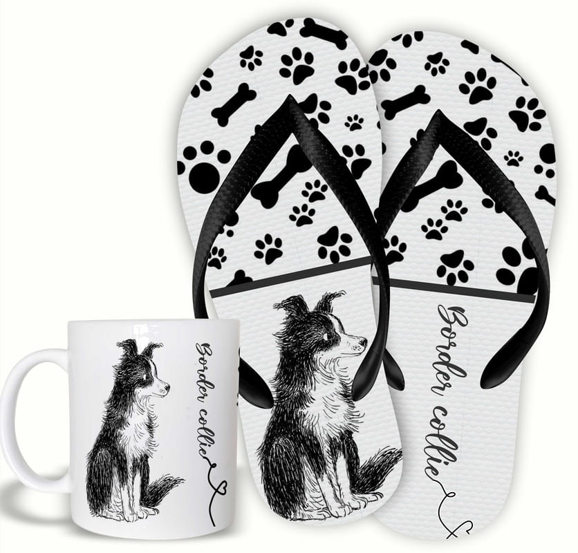 CalçadosChinelosKIT Border Caneca cerâmica + Chinelo PET