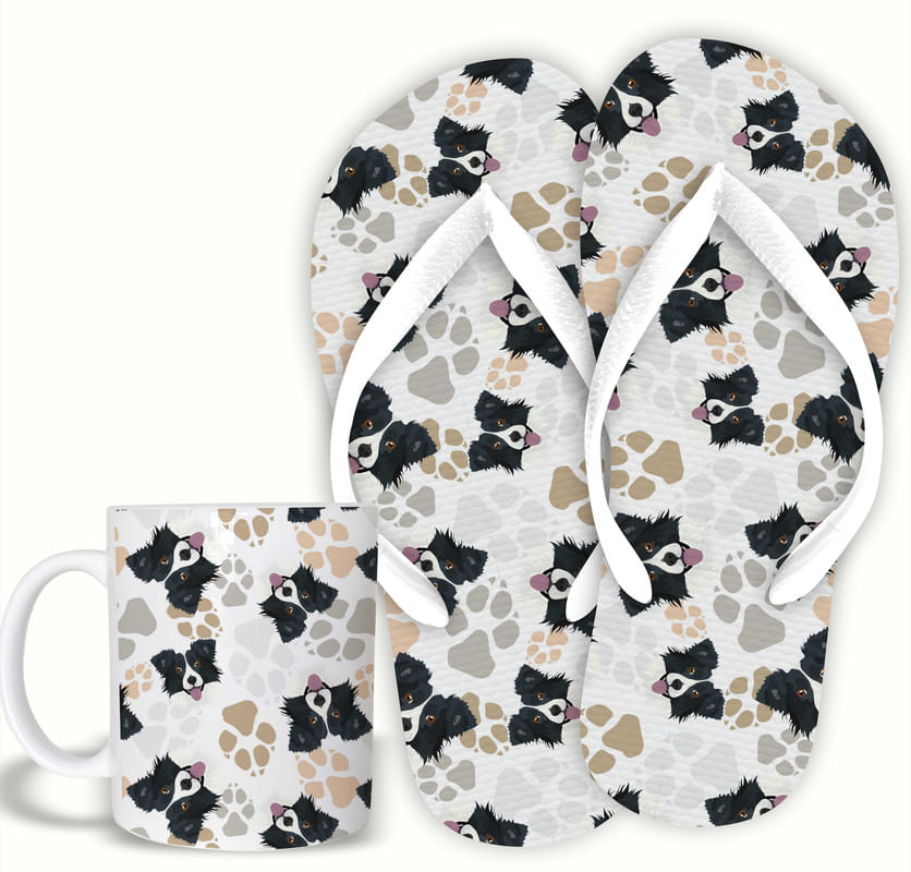 KIT Border Caneca cerâmica e Chinelo PET